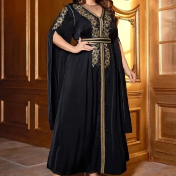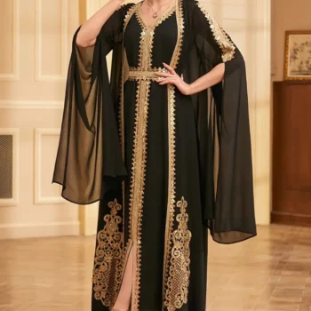 قفطان أنيق باللون الأسود مطرّز بالذهبي