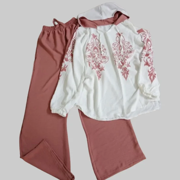 طقم نسائي مكوّن من كنزة ناعمة وبنطال بنفس الخامة