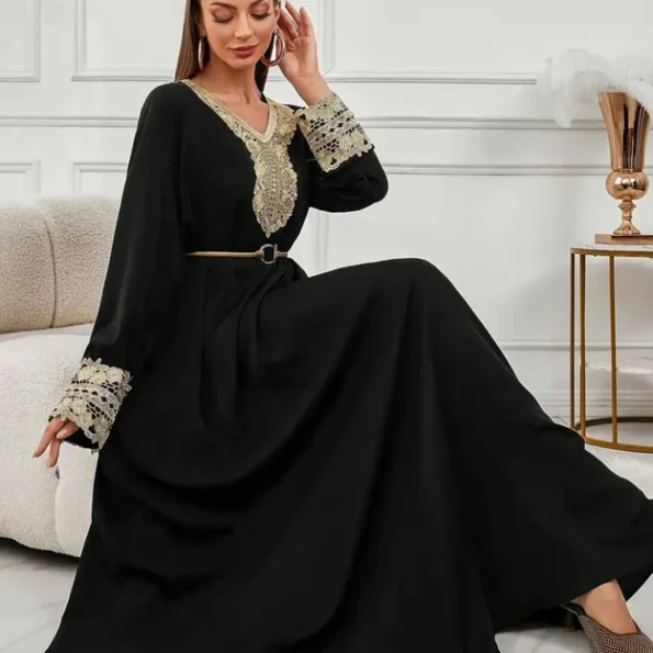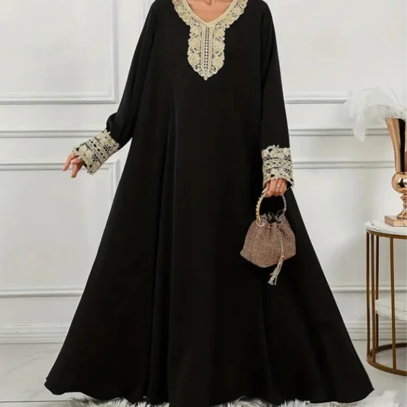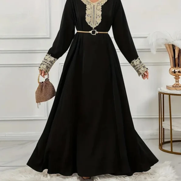 تألّقي بإطلالة راقية تخطف الأنظار مع هذا القفطان الأسود الفاخر المصمم خصيصًا ليبرز أنوثتك بكل نعومة..