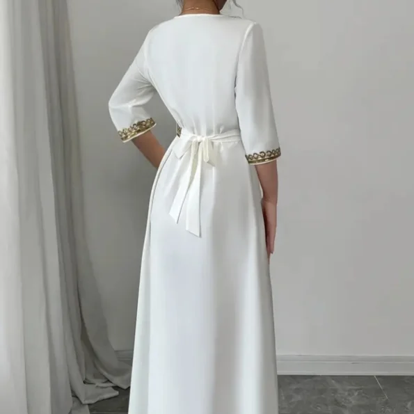 - أكمام متوسطة الطول بتفاصيل تطريز راقية