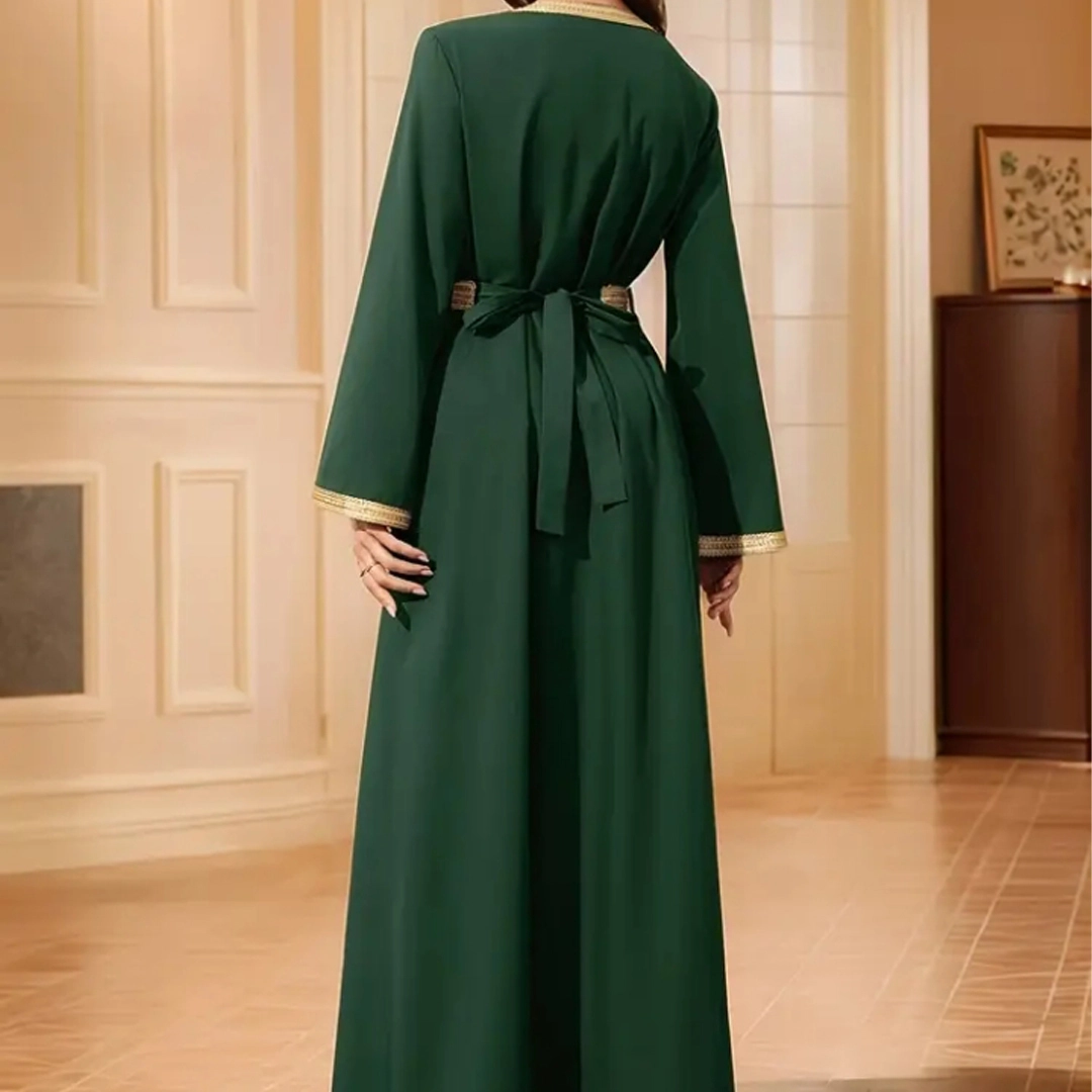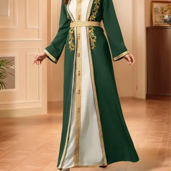 - صرمة ذهبي فاخر على طول الياقة والأكمام والأمام
