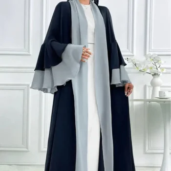 - عباءة بألوان متناسقة (أزرق داكن ورمادي فاتح)